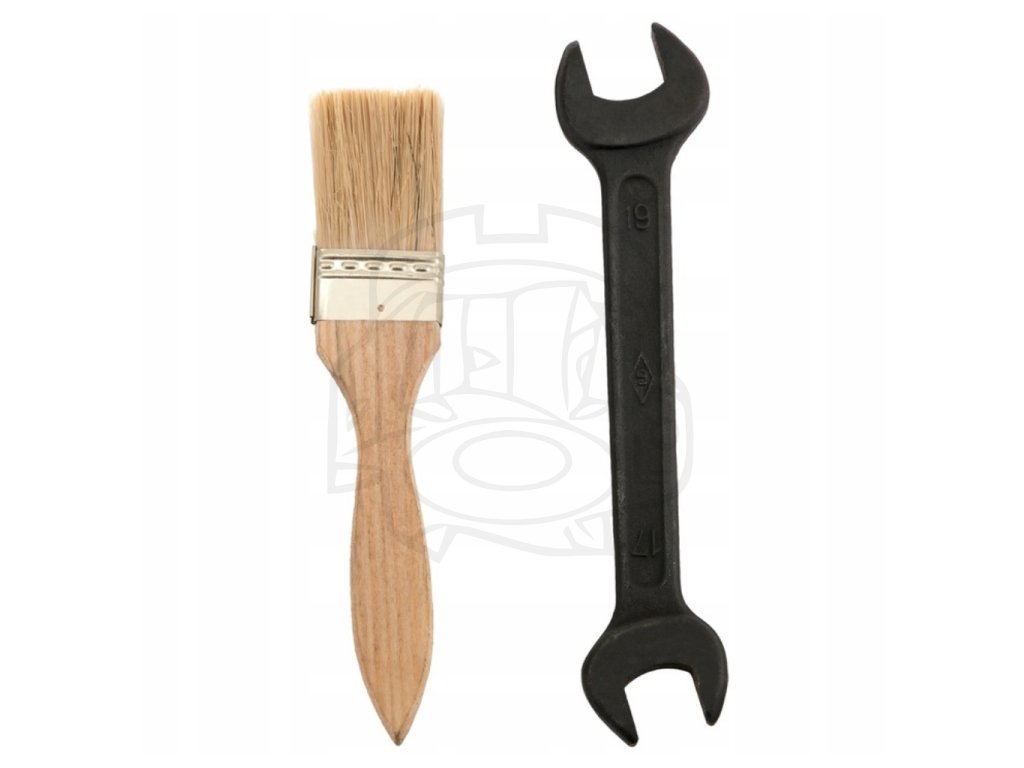 Áno, súčasťou je ručný kľúč a čistiaca kefka.